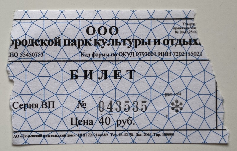 Tyumen City Park for Culture and Recreation, “Tyumen City Park for Culture and Recreation,” fishtickets, accessed December 15, 2025, https://pilotfish.info/items/show/101.