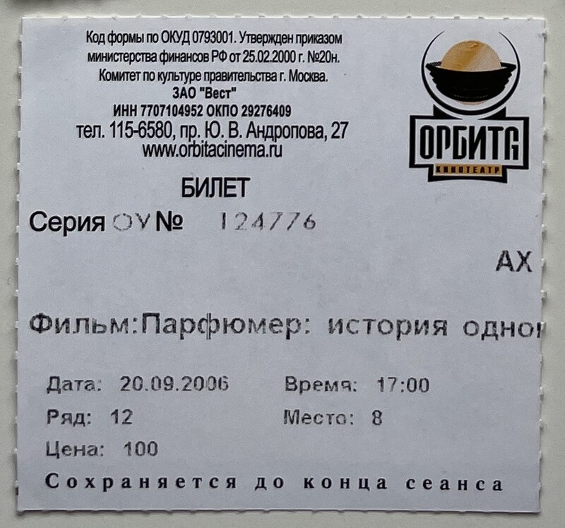 Orbita, “Парфюмер: история одного убийцы / Perfume: The Story of a Murderer,” fishtickets, accessed December 17, 2025, https://pilotfish.info/items/show/148.