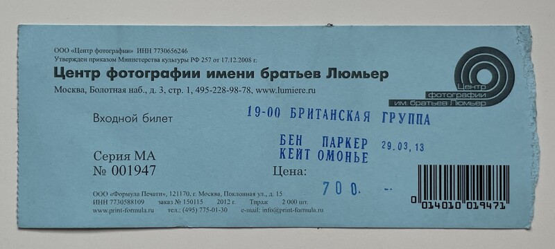 The Lumiere Brothers Center for Photography, “Британская группа (Бен Паркер, Кейт Омонье) / British band (Ben Parker, Kate Aumonier),” fishtickets, accessed December 13, 2025, https://pilotfish.info/items/show/16.