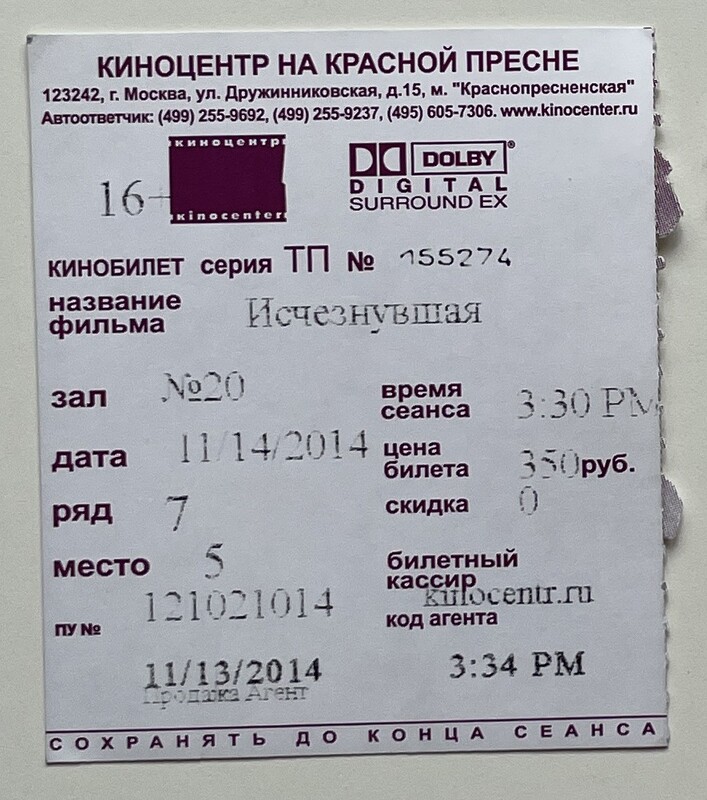 Cinema Center on Krasnaya Presnya, “Изчезнувшая / Gone Girl,” fishtickets, accessed December 17, 2025, https://pilotfish.info/items/show/161.