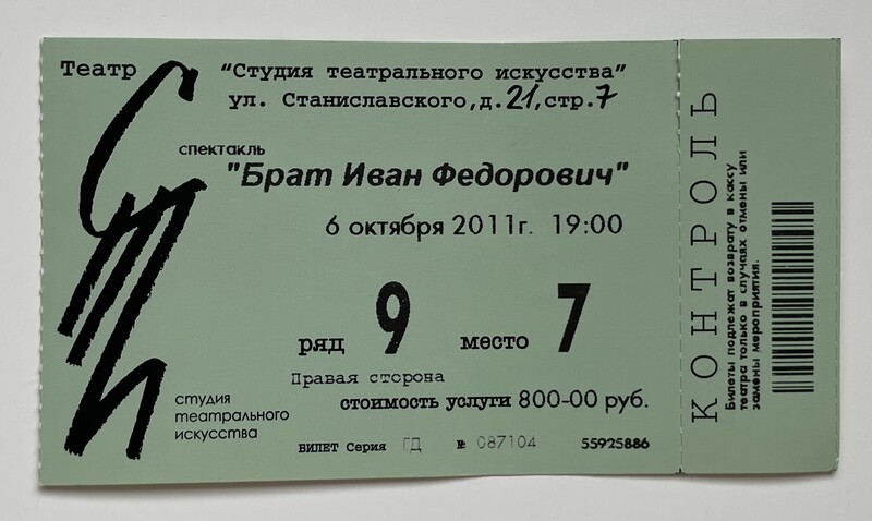 The Studio of Theatrical Arts, “Брат Иван Фёдорович / Brother Ivan Fedorovich,” fishtickets, accessed December 13, 2025, https://pilotfish.info/items/show/19.