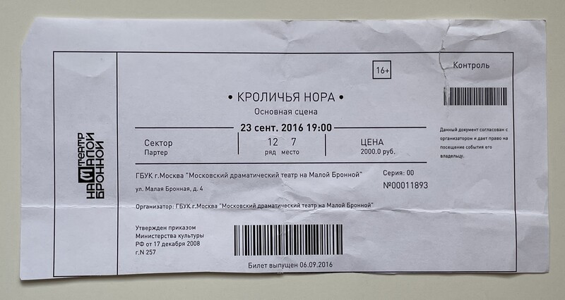 Theater on Malaya Bronnaya, “Кроличья нора / Rabbit hole,” fishtickets, accessed December 13, 2025, https://pilotfish.info/items/show/21.