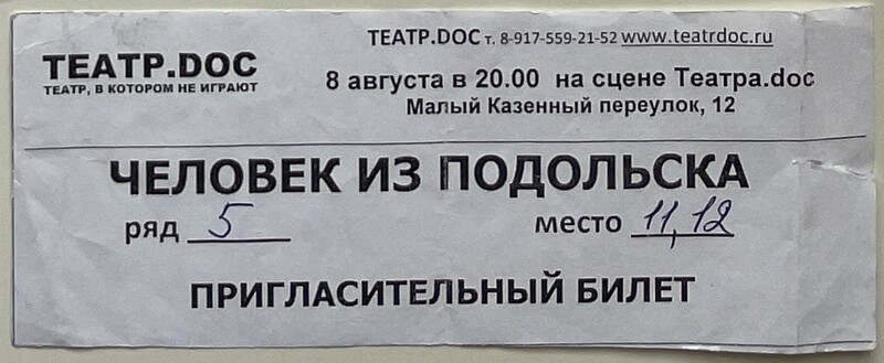 Teatr.doc, “Человек из Подольска / A Man From Podolsk,” fishtickets, accessed April 25, 2026, https://pilotfish.info/items/show/307.