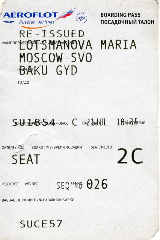 Aeroflot, “Moscow—Baku Flight,” fishtickets, accessed April 25, 2026, https://pilotfish.info/items/show/464.