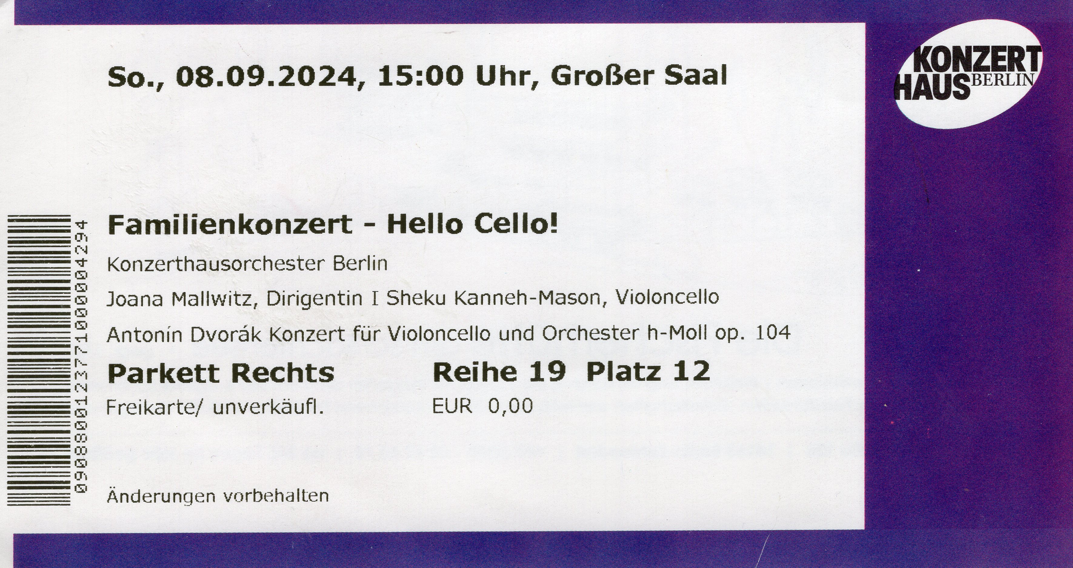 Concert House Berlin, “Family Concert — Hello Cello!,” fishtickets, accessed April 25, 2026, https://pilotfish.info/items/show/466.