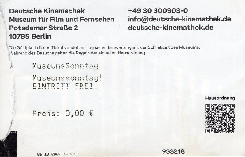 Deutsche Kinemathek — Museum für Film und Fernsehen, “Deutsche Kinemathek — Museum für Film und Fernsehen,” fishtickets, accessed April 29, 2026, https://pilotfish.info/items/show/490.