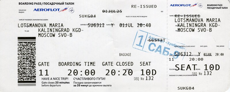 Aeroflot, “Kaliningrad—Moscow Flight,” fishtickets, accessed April 29, 2026, https://pilotfish.info/items/show/520.
